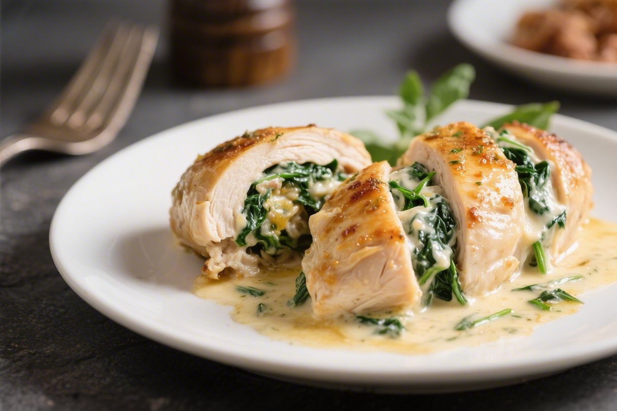 The creamy spinach filling keeps the chicken moist, so every bite is tender instead of dry.