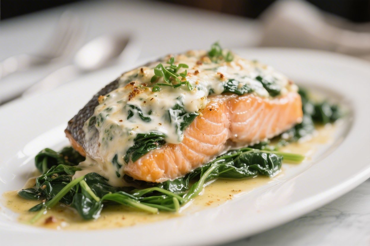 Creamy Spinach Stuffed Salmon – A Cozy, Restaurant-Style Dinner at Home