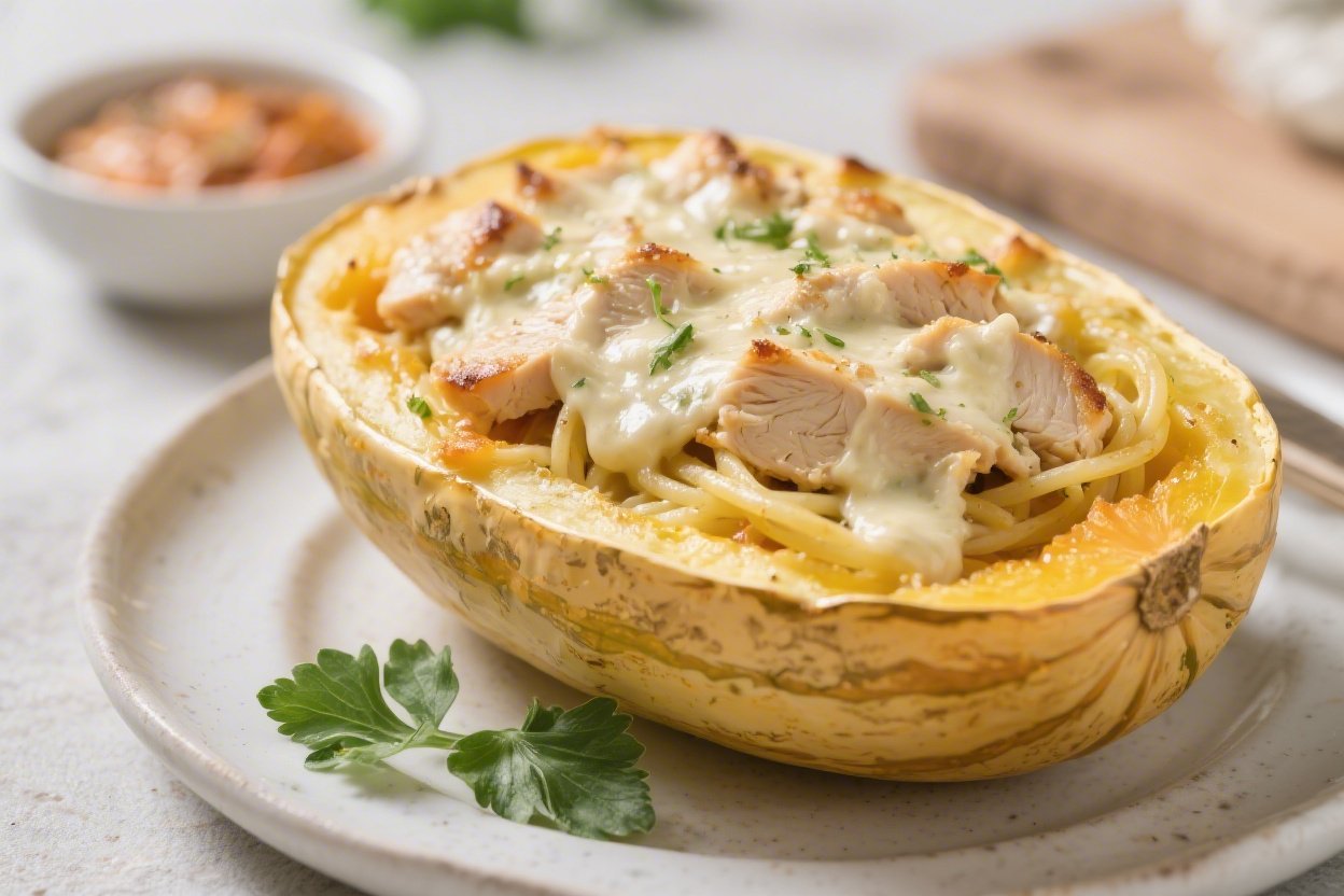 Keto Chicken Alfredo Stuffed Spaghetti Squash – Creamy, Comforting, and Low-Carb