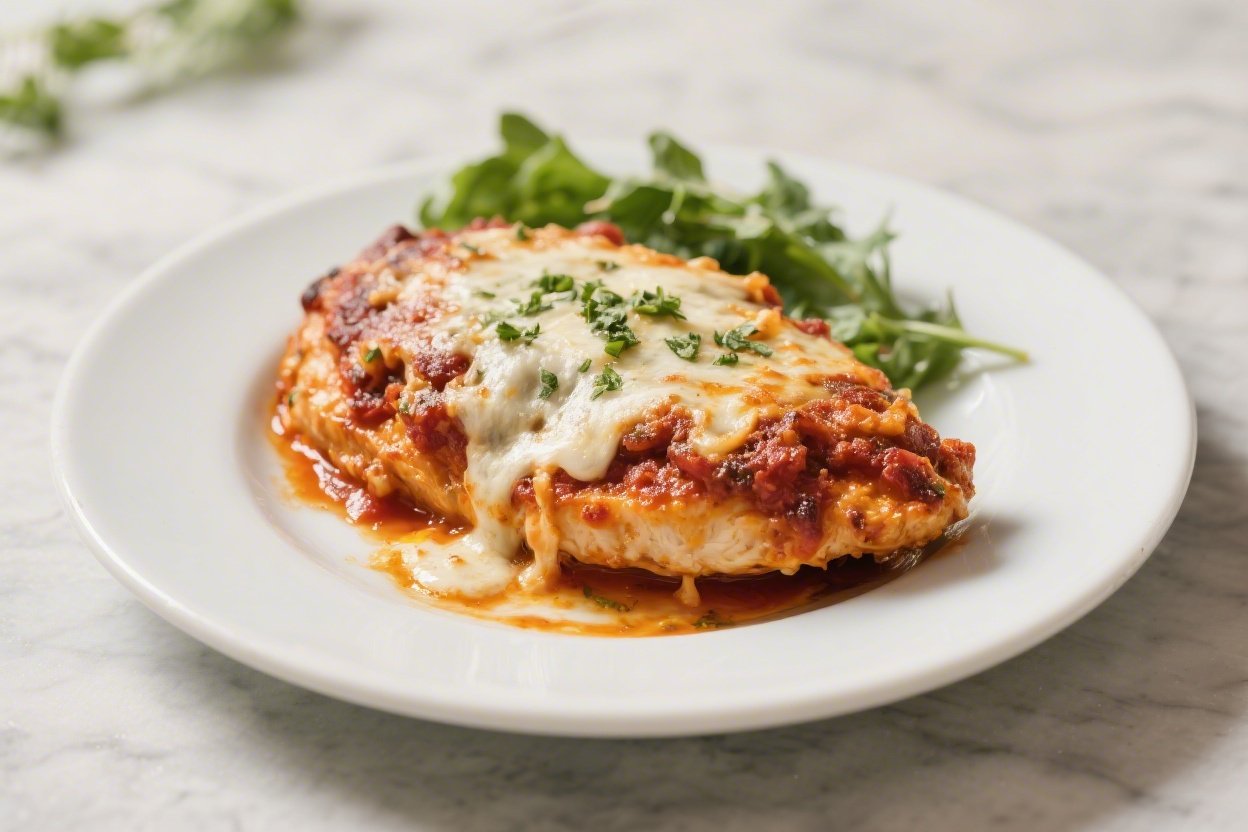 • Big flavor, familiar comfort. You get the classic Chicken Parm experience—savory sauce, stretchy cheese, and a crisp crust—without bread crumbs.