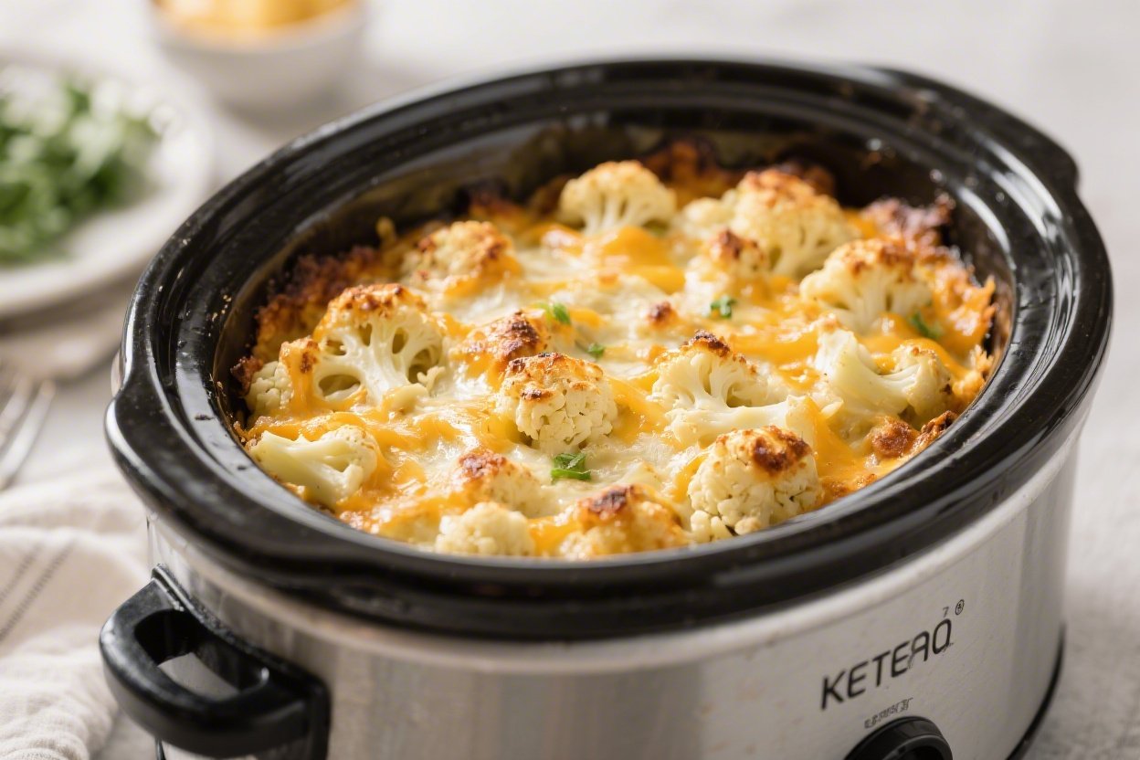 Keto Crockpot Cheesy Cauliflower Bake – Comforting, Easy, and Low-Carb