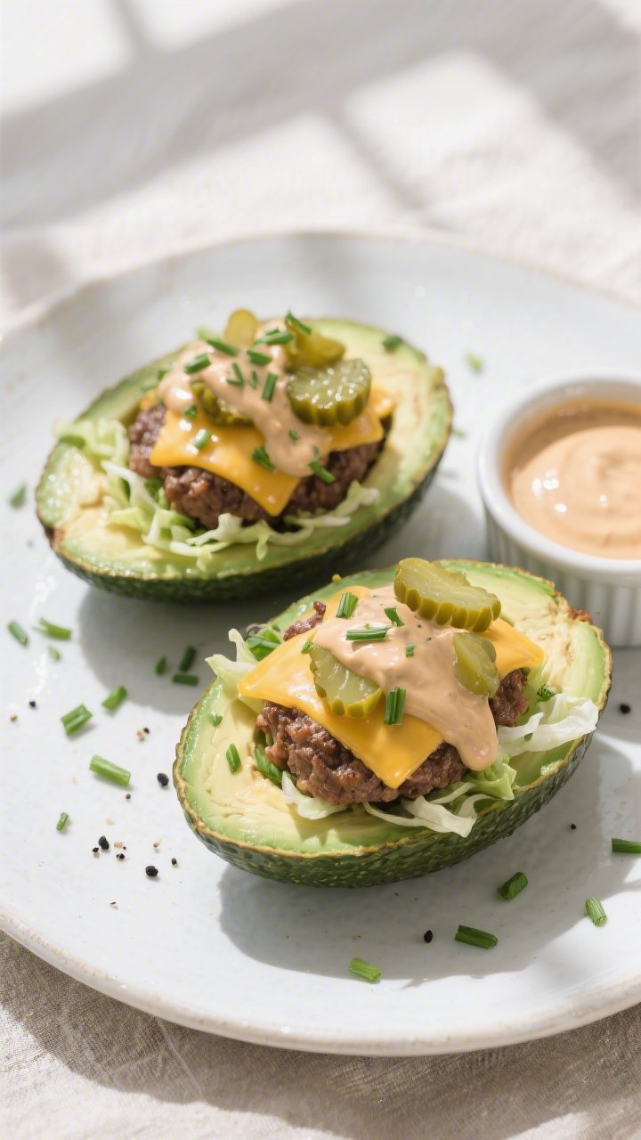 You get the best parts of a burger—savory beef, cheese, pickles, and sauce—without the carb crash. It’s also flexible: swap toppings, change the cheese, or add heat to match your mood. And cleanup is quick, since you’re cooking in one pan and serving in the avocado itself.