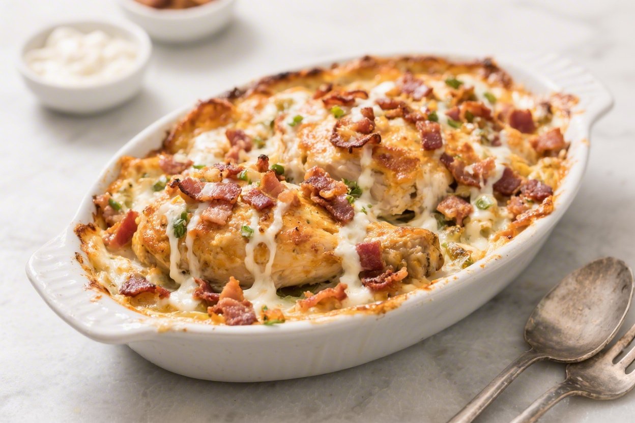Loaded Bacon Ranch Chicken Bake - Creamy, Cheesy, Crowd-Pleasing Comfort Food