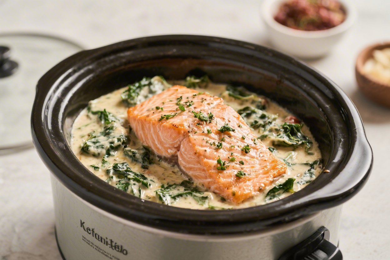 Slow Cooker Keto Creamy Tuscan Salmon – Rich, Comforting, and Low-Carb